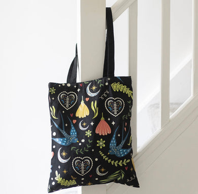 Midnight Bloom Polycotton Tote Bag – Reusable Floral Print Shopper Bag