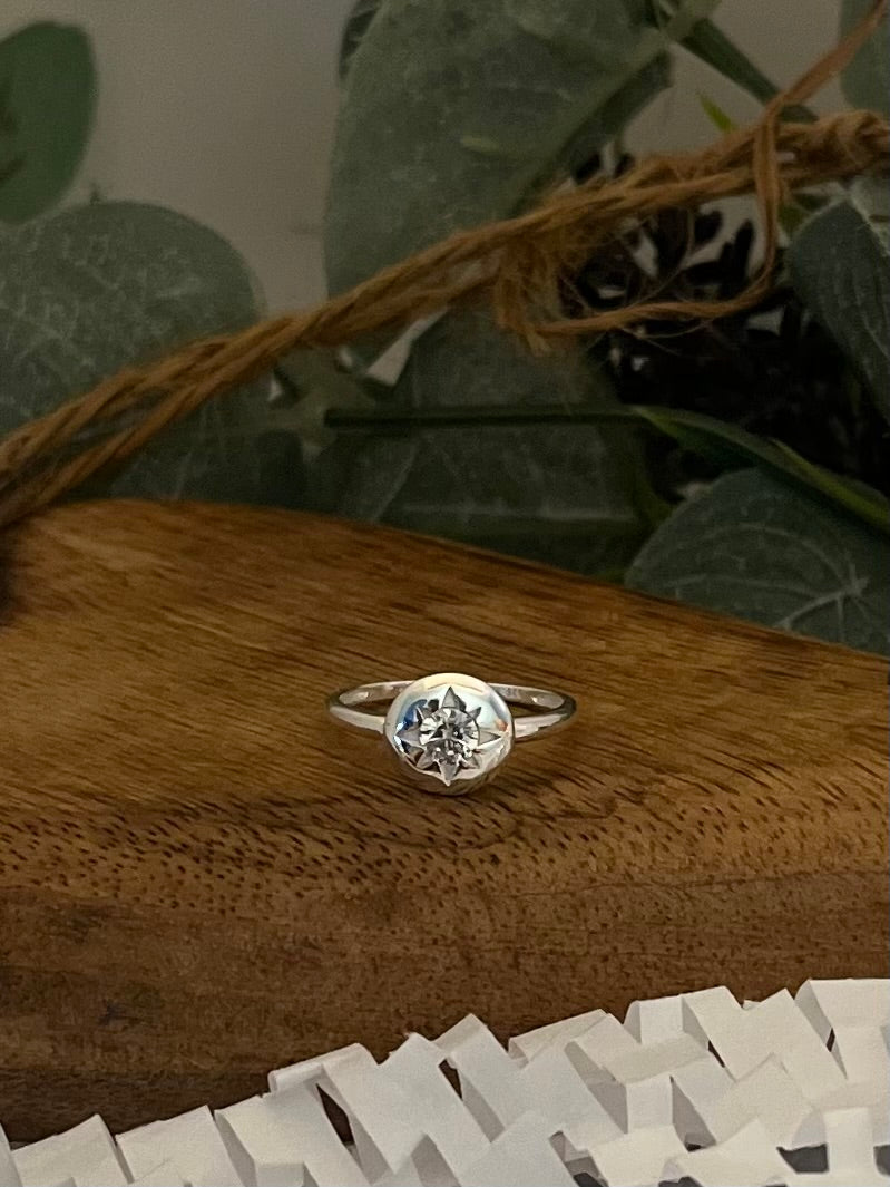 Expertly crafted with sterling silver, this elegant ring features a sparkling crystal detail in the shape of the North Star. Add a touch of celestial shine to your everyday look with this timeless piece. The perfect gift for any stargazer or fashion-forward individual.