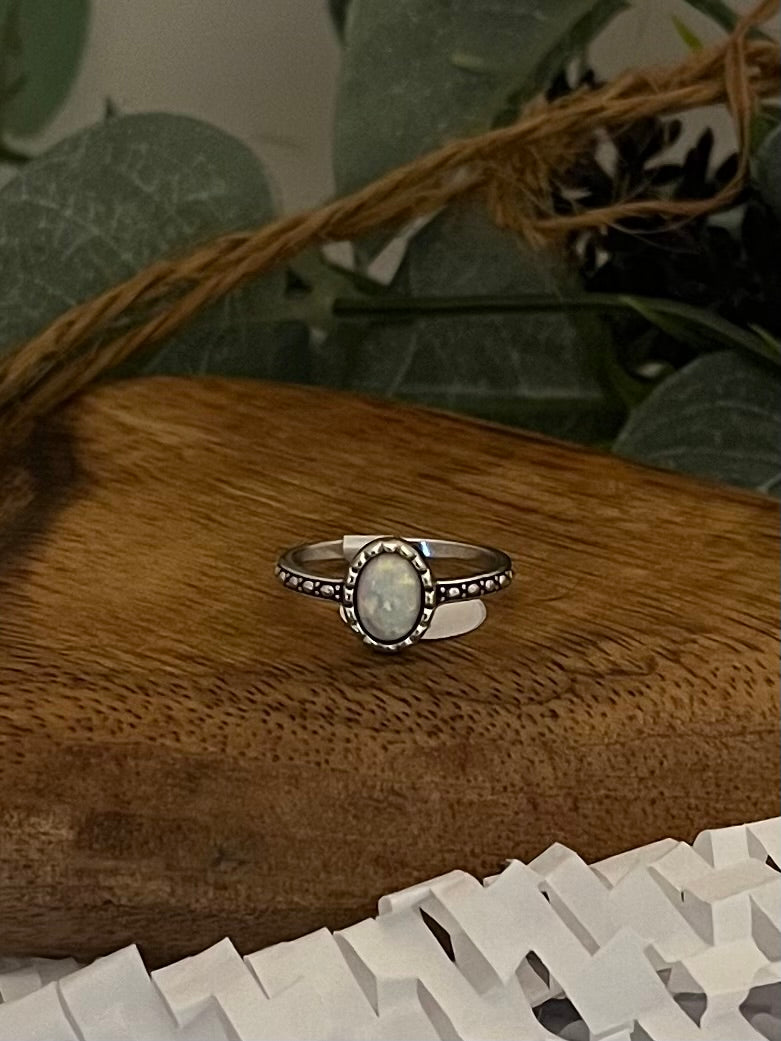 Indulge in timeless elegance with our Oval Opal Vintage Style Sterling Silver Ring. Crafted with finesse, the vintage style ring showcases a mesmerizing opal stone set in high-quality sterling silver. Make a statement with this unique and luxurious piece, perfect for adding a touch of sophistication to any outfit.